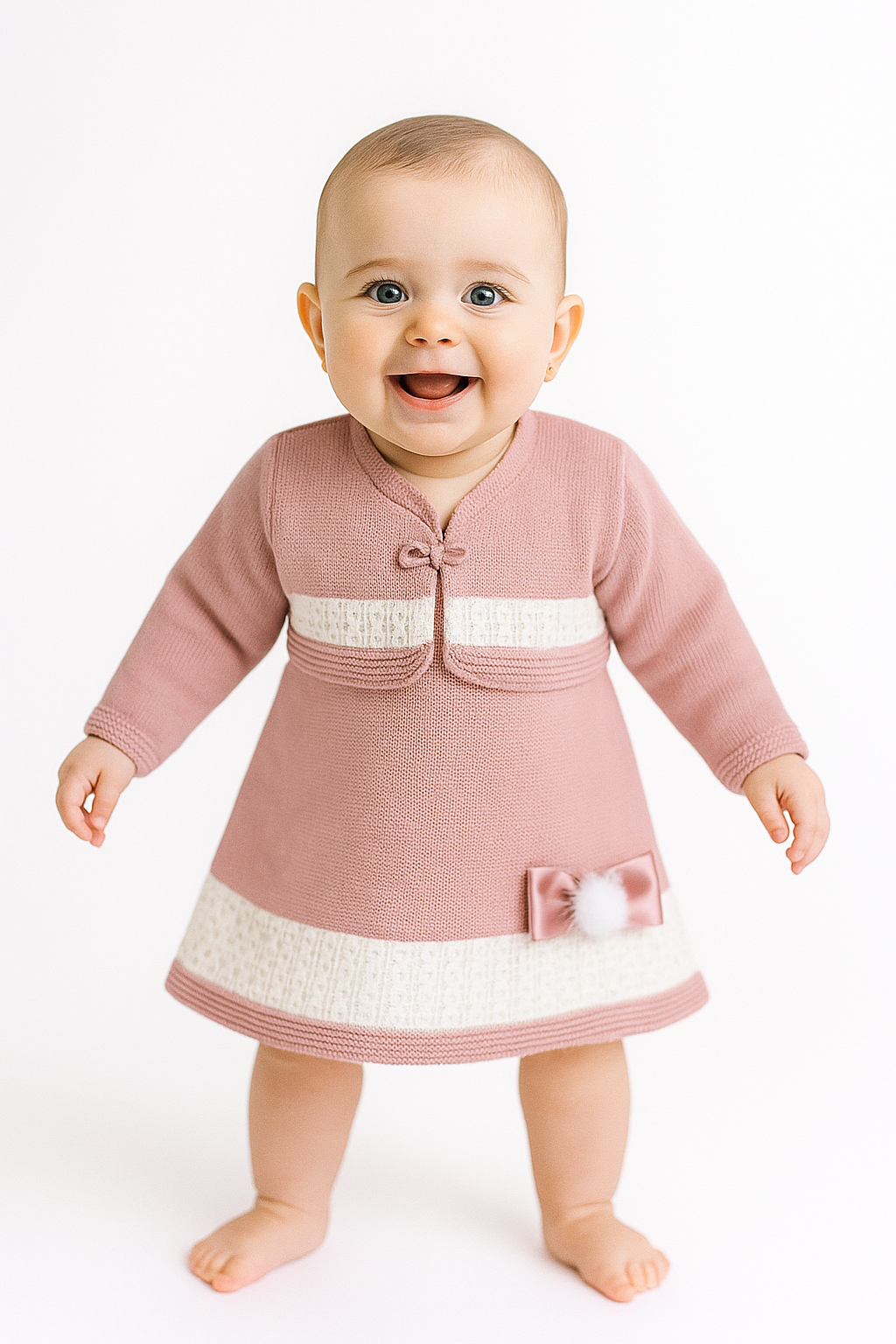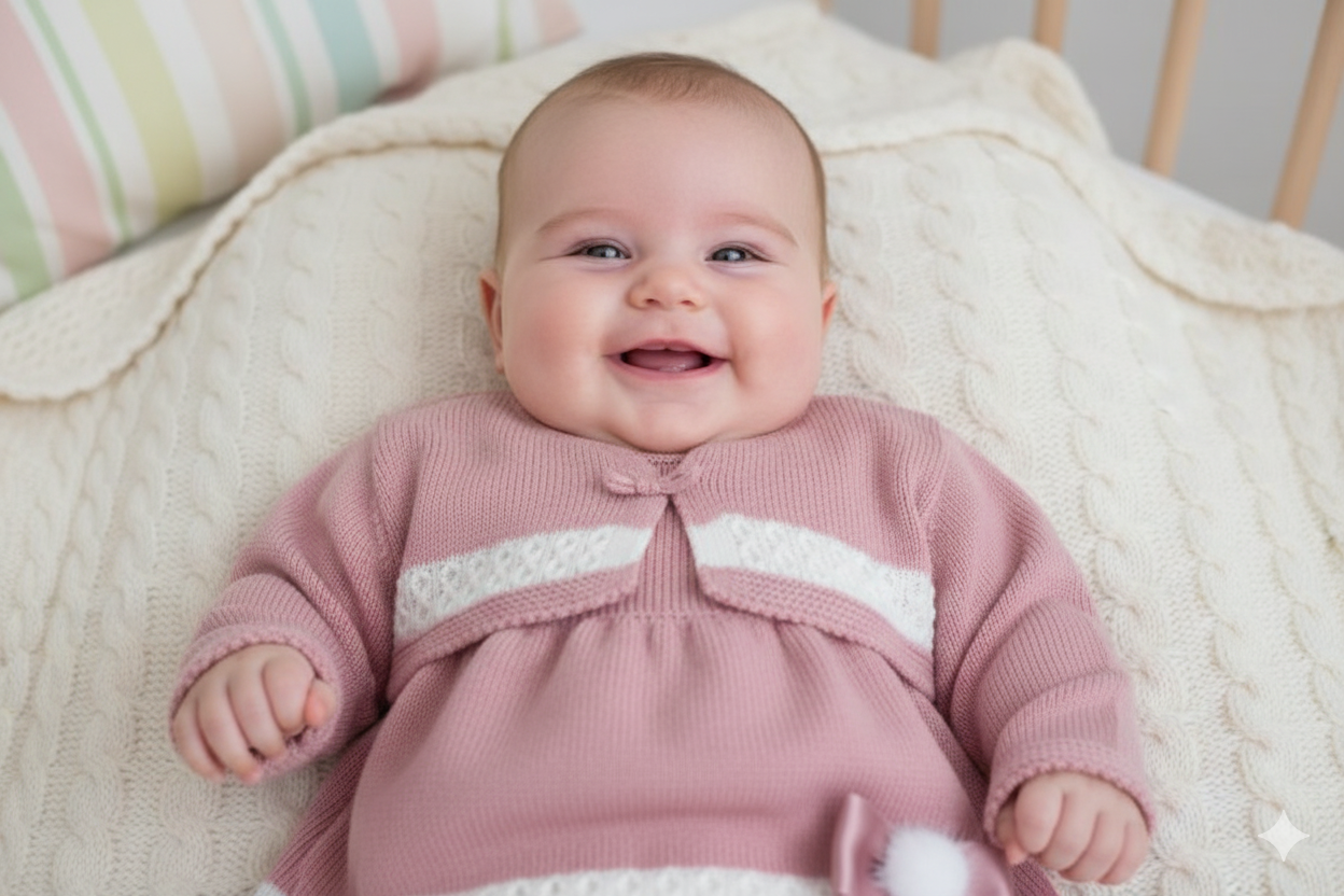 Diese zauberhafte dunkelrosa Babyjacke besticht durch ihre feine Verarbeitung und das besondere Detail einer hübschen Satinschleife, die dem Kleidungsstück eine elegante Note verleiht. Hergestellt aus 100 % hochwertiger Babywolle bietet sie wohlige Wärme und ein besonders weiches Tragegefühl – ideal für empfindliche Babyhaut.